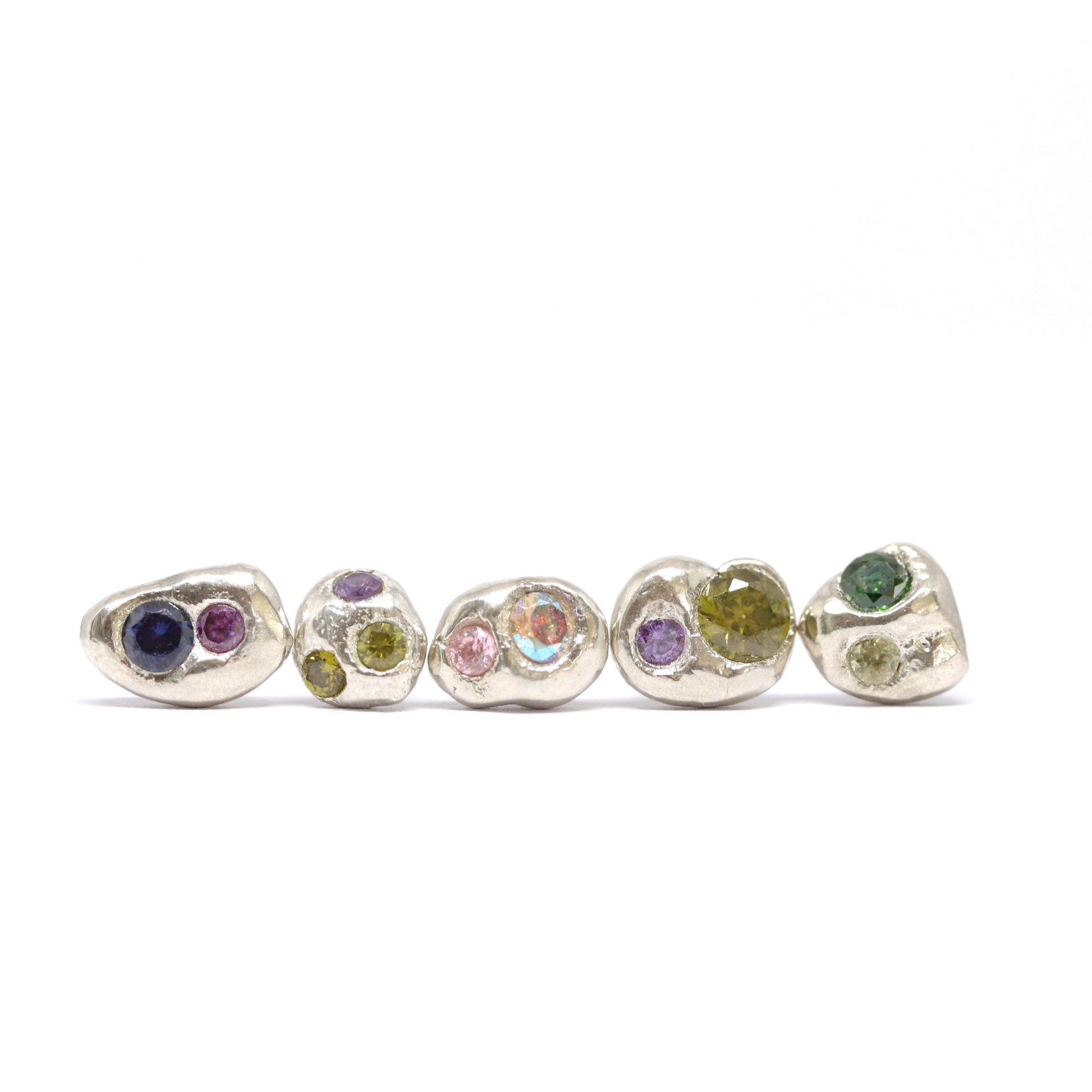 Cubic zirconia, silver stud earrings. Unique, colourful jewellery designed and crafted by Wānaka jeweller Briar Hardy-Hesson.