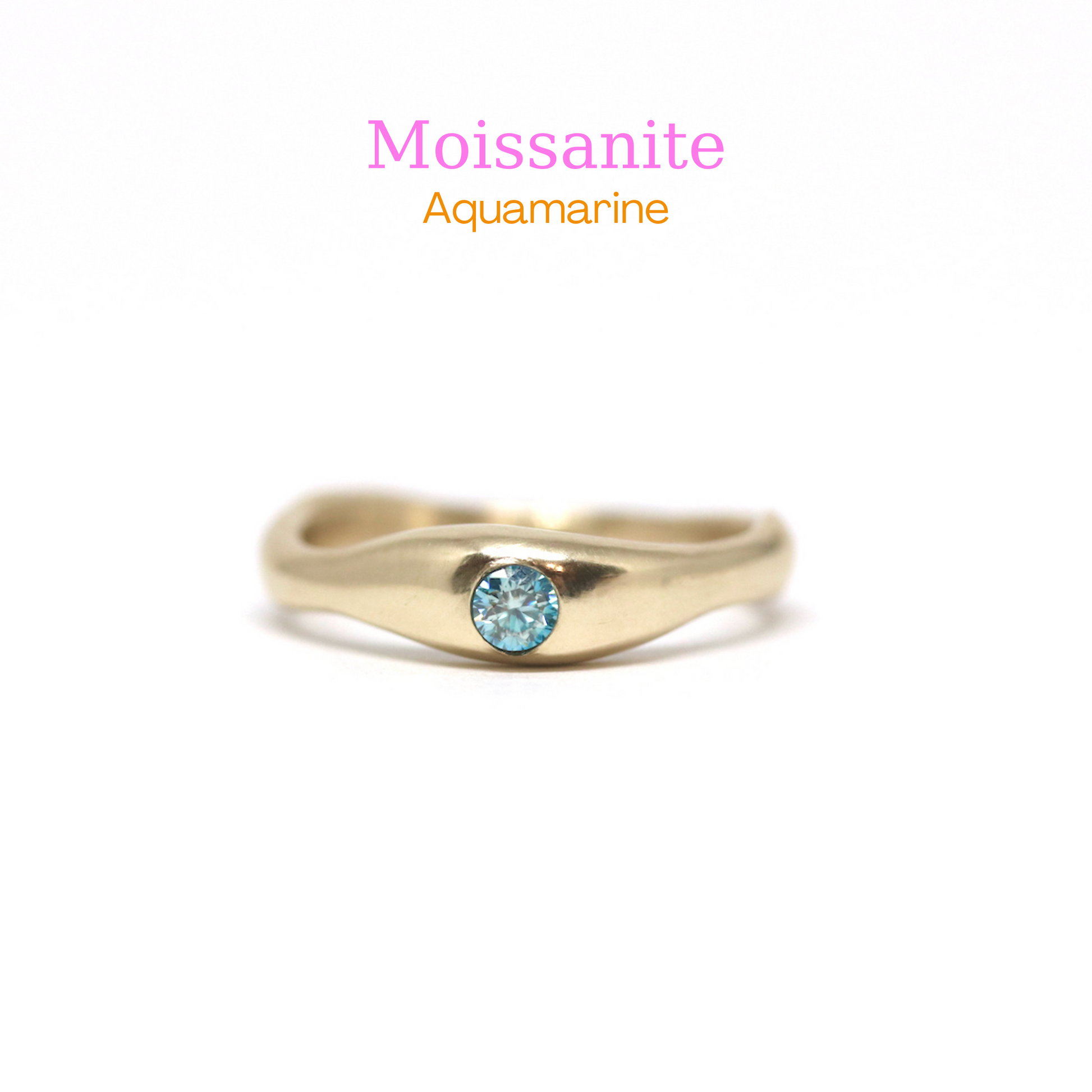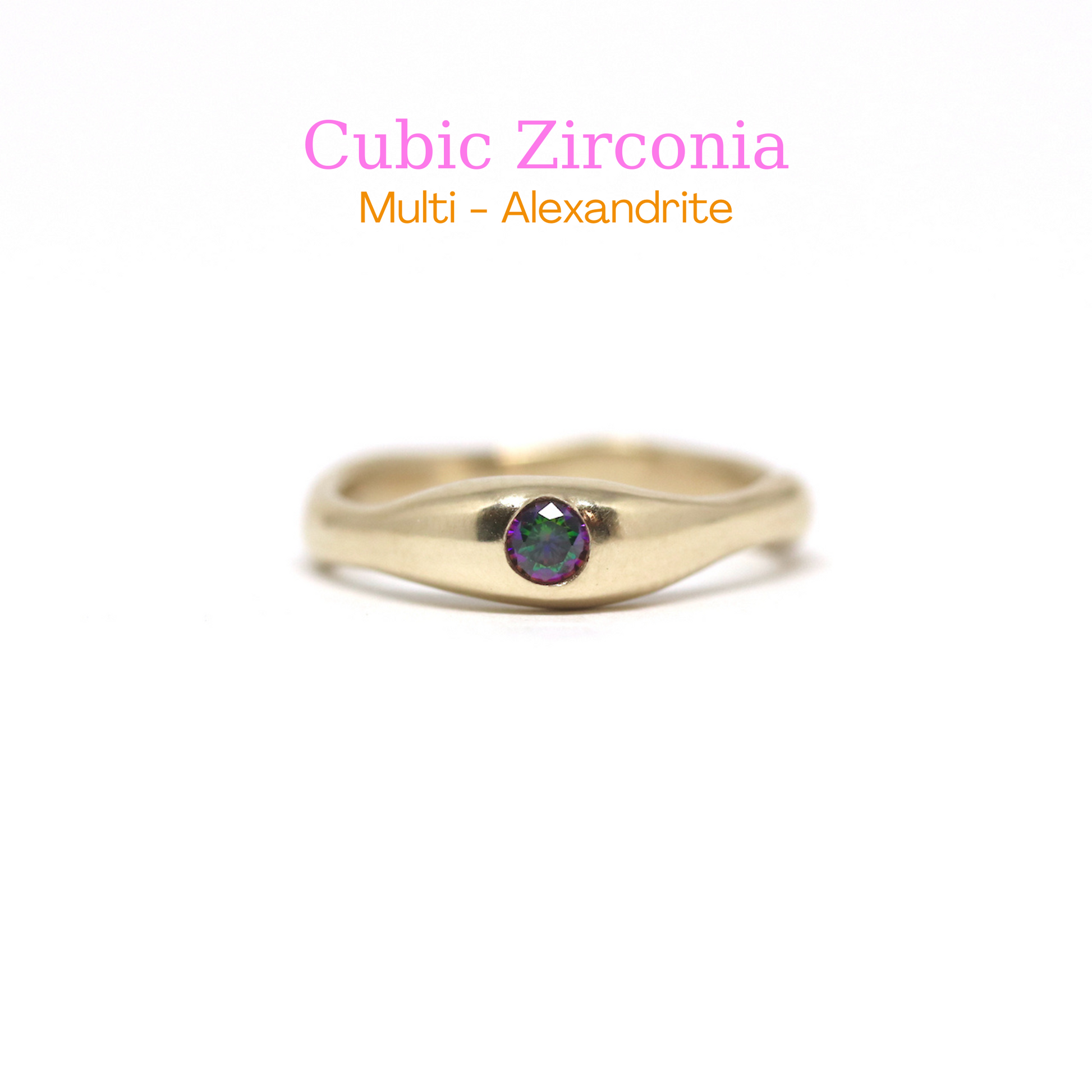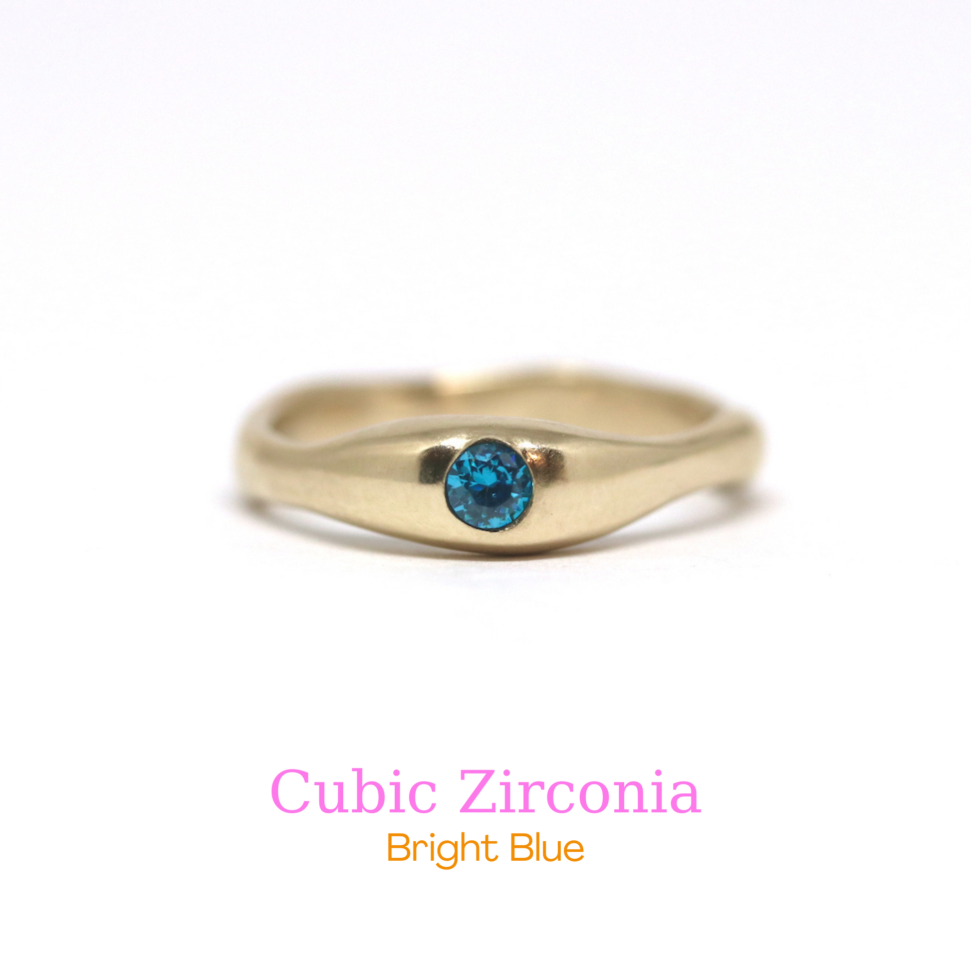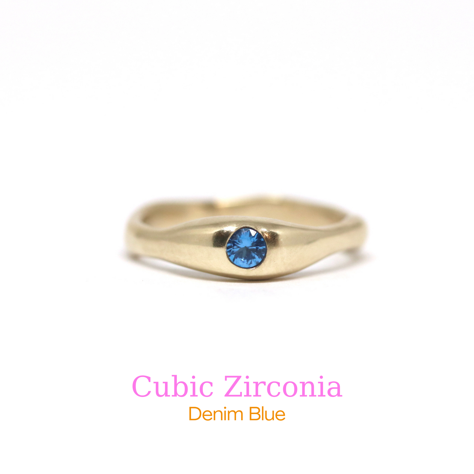 A wobbly Wonky ring of solid 9ct gold with singular colourful cubic zirconia or sparkly moissanite of your choice. Each ring is made to order and is totally individual.