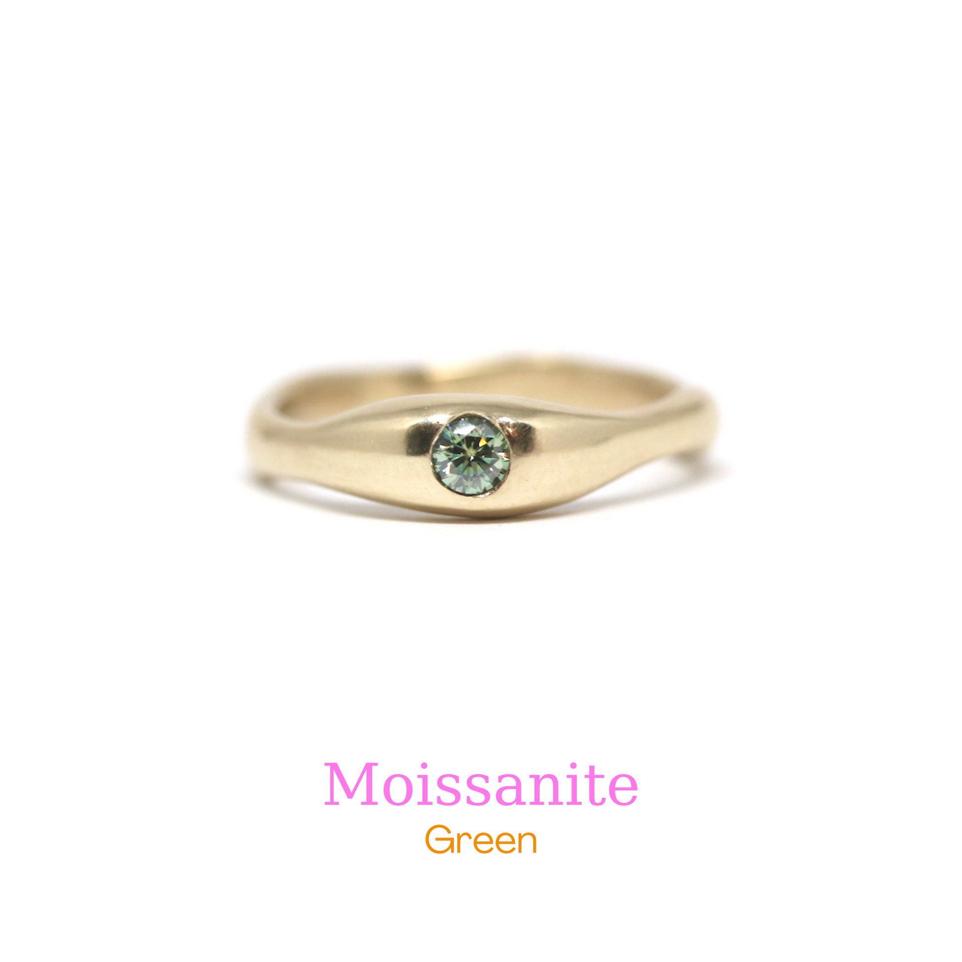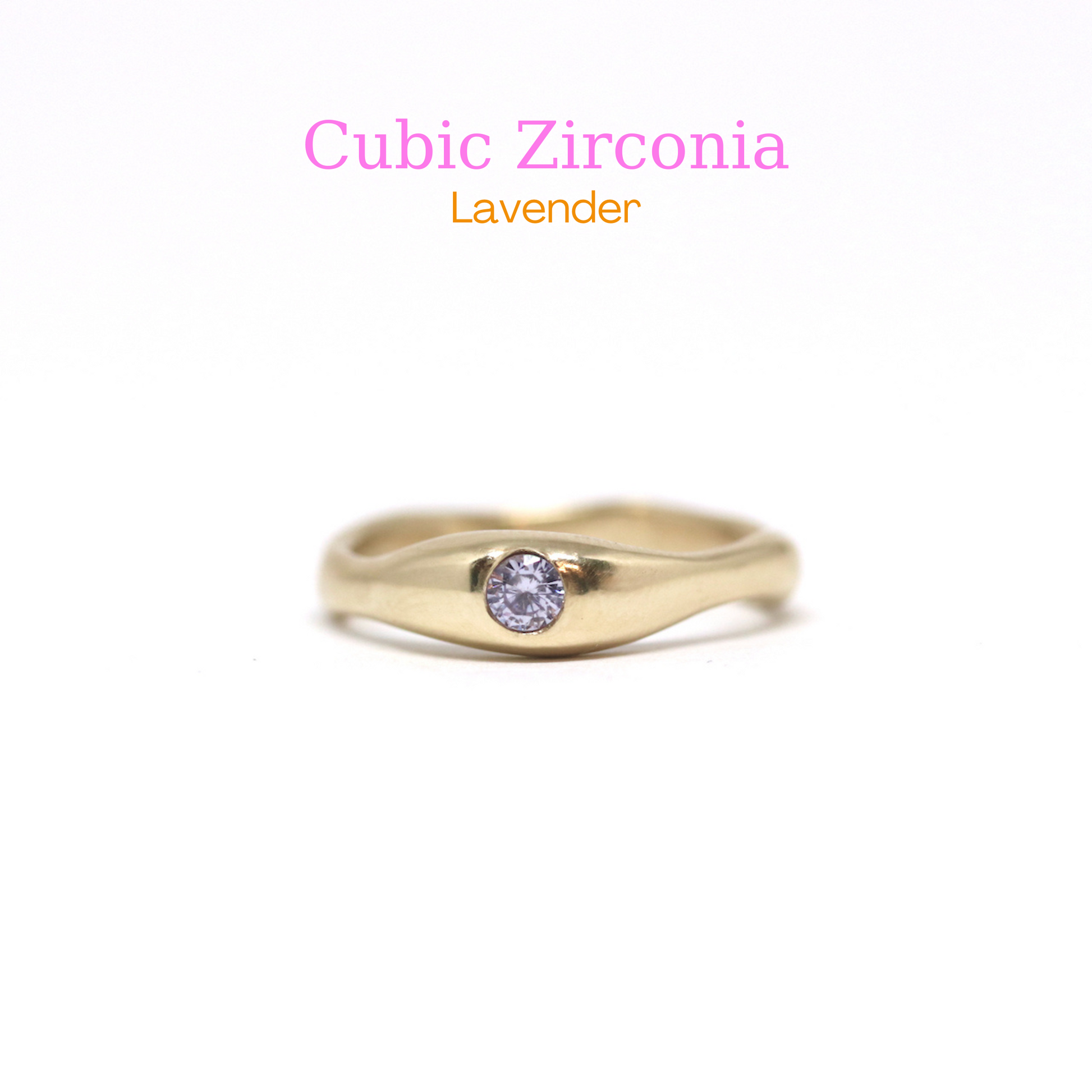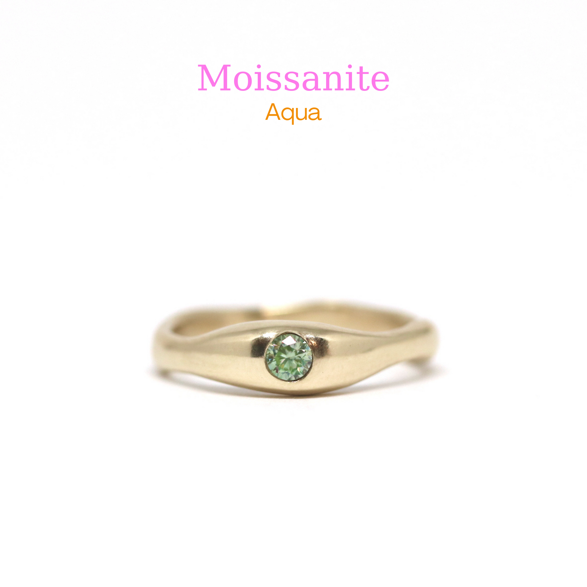 A wobbly Wonky ring of solid 9ct gold with singular colourful cubic zirconia or sparkly moissanite of your choice. Each ring is made to order and is totally individual.