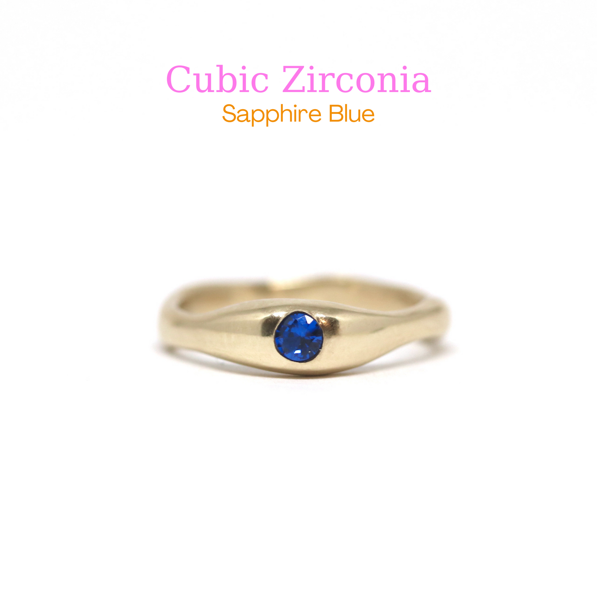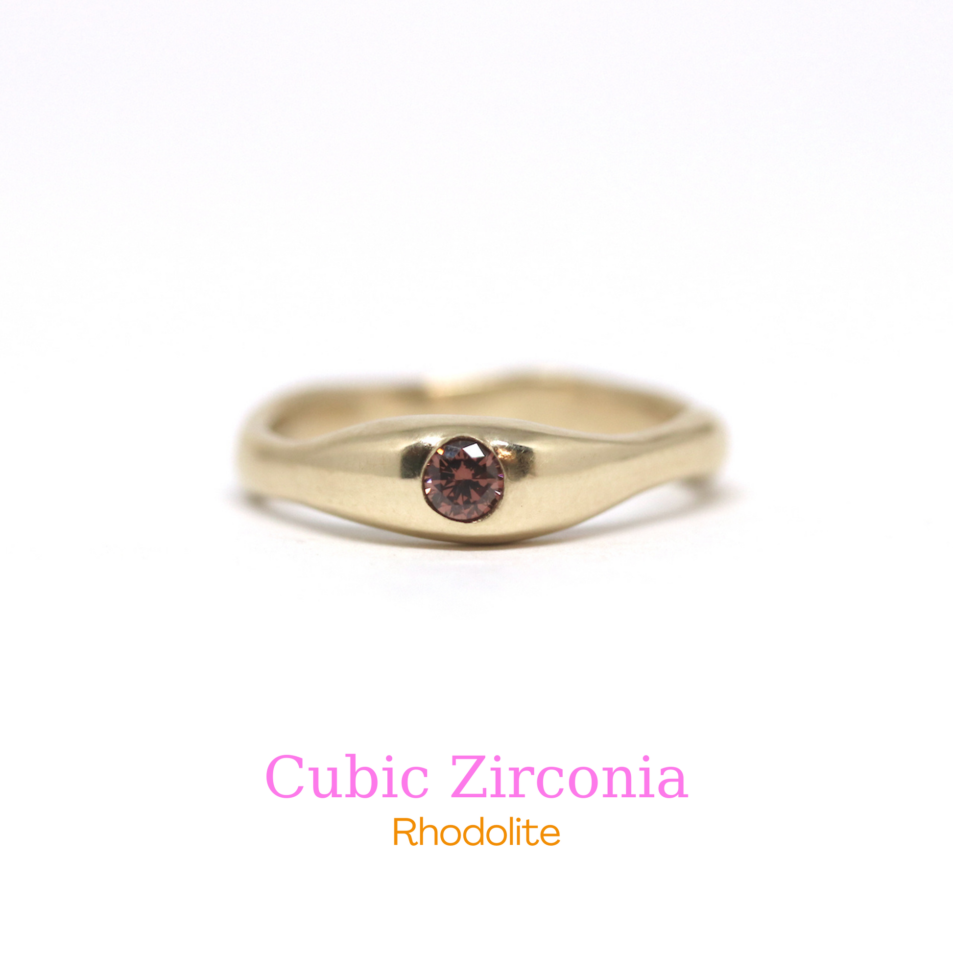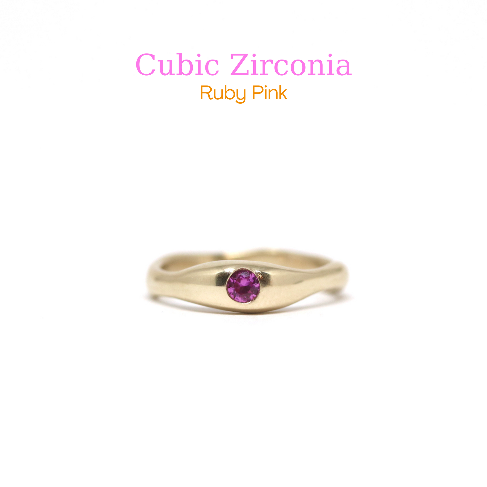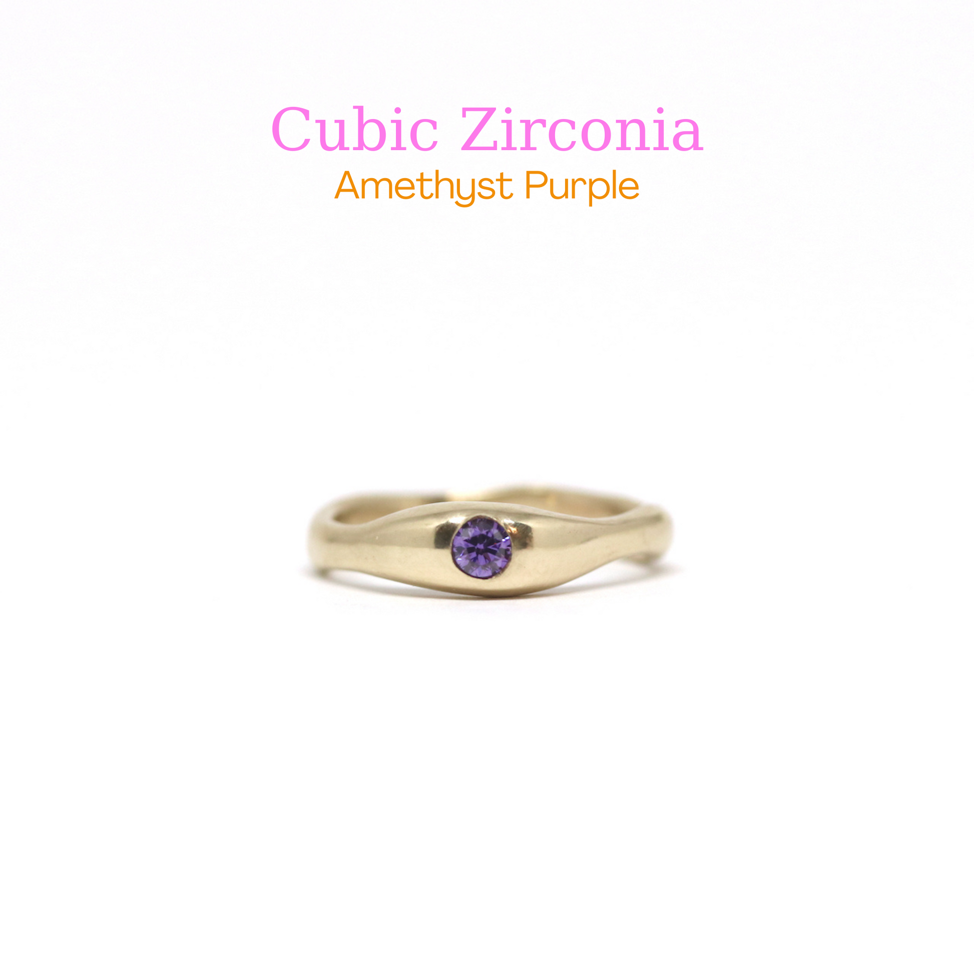 A wobbly Wonky ring of solid 9ct gold with singular colourful cubic zirconia or sparkly moissanite of your choice. Each ring is made to order and is totally individual.